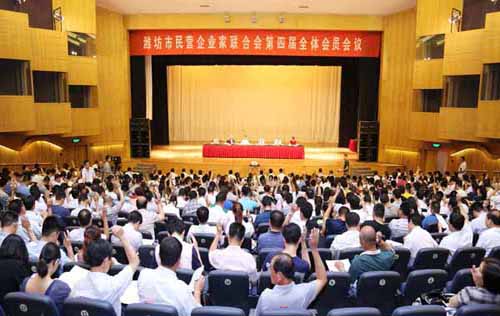 濰坊市民營企業家聯合會第四屆全體會員會議的圓滿召開,重新注入了全新的活力,吸納了更多優秀的民營企業家,將濰坊各縣區民營企業的力量凝聚在一起。聯合會本著溝通政企,服務民營企業的目的,充分發揮橋梁與紐帶作用,切實維護民營企業家和民營企業的合法權益,提升民營企業家整體素質,促進我市民營經濟又好又快發展。