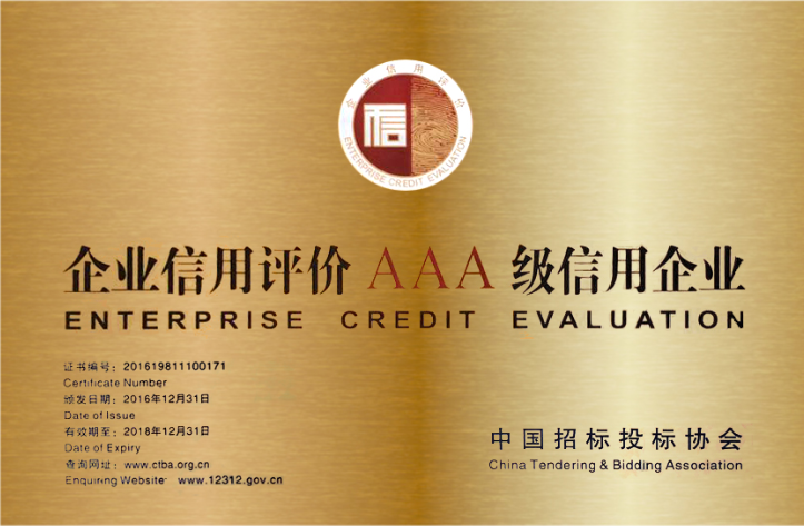 2016年,中國招投標行業(yè)首次開展信用評價試點,公司獲得此項殊榮,不僅是對公司誠實守信的激勵,更是對公司社會責任的認可。