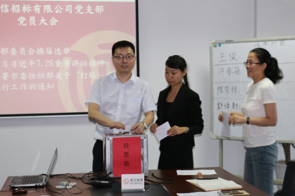 為進一步強化基層黨組織凝聚力,提升基層黨組織戰斗力,充分發揮基層黨組織的黨員先鋒模范作用,中共山東齊信招標有限公司支部根據《中國共產黨章程》等規定要求,于2017年8月18日下午組織開展了黨支部換屆工作,為從嚴治黨專項行動組織建設奠定了良好基礎,將有力推動從嚴管黨治黨責任在基層落實。